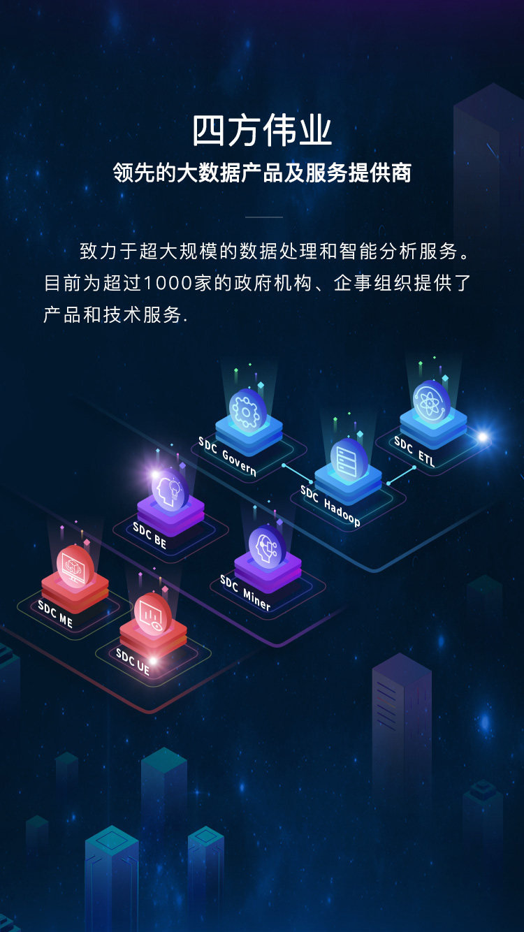 致力于超大規(guī)模的數據處理和智能分析服務。目前為超過1500家政府機構、企事組織提供了產品和技術服務。